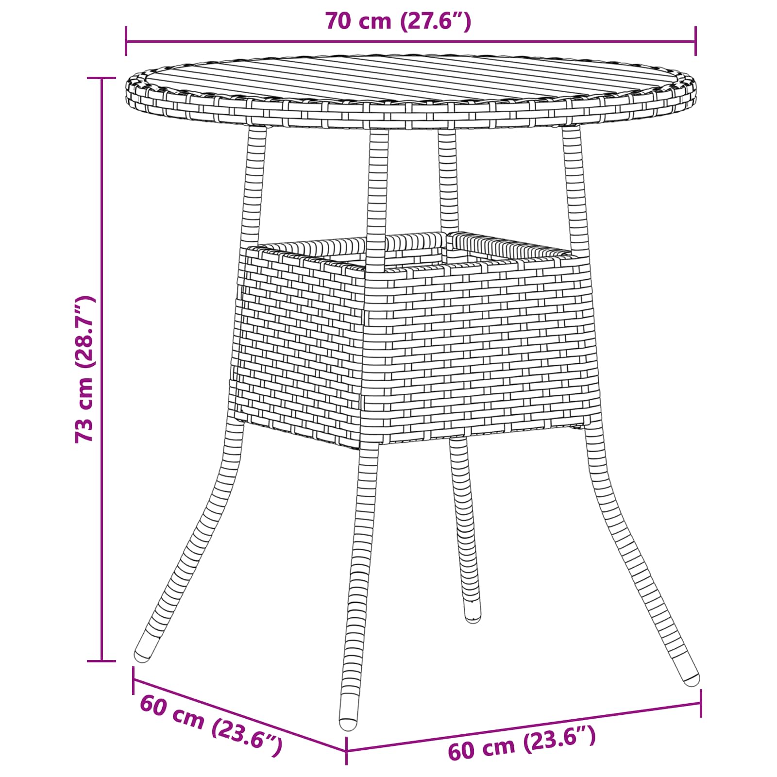 Övergripande dimensioner: 70 x 70 x 73 cm (L x B x H)