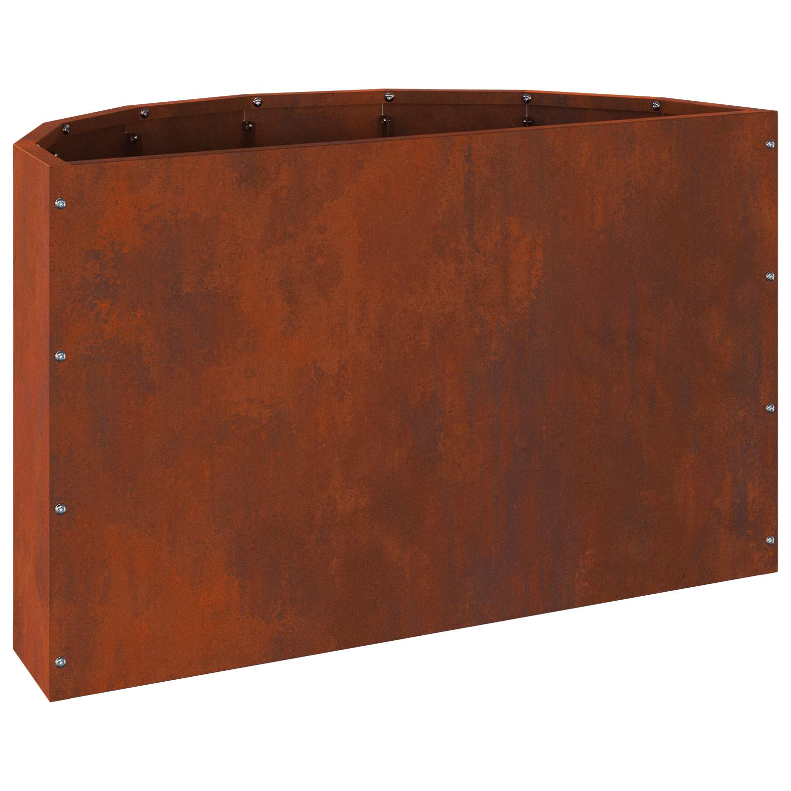 Den här snygga halvrunda trädgårdsplanteraren är gjord för att ge din utemiljö en boost med sin moderna stil och starka konstruktion. Byggd speciellt för utomhusbruk har den en stilren halvrund form som passar perfekt in i trädgårdar eller på terrasser. Med sin robusta stålkonstruktion kan du vara säker på att dina växter kommer att trivas där i många år. Den här planteraren gör det enkelt att förbättra ditt utomhusområde och öppnar upp för kreativa landskapsidéer med sin mångsidiga design.