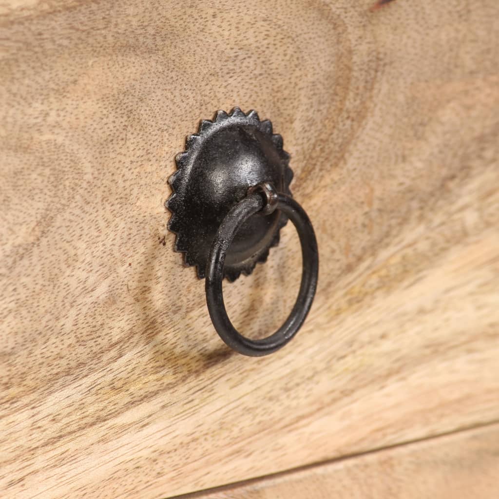 Sidobordet är handgjort i mangoträ som är massivt, stabilt, hållbart och vackert, och hantverksskickligheten bidrar till dess spektakulära retro stil. Varje steg i processen utförs med största omsorg, vare sig det är polering, målning eller lackering. Hantverksskickligheten och de vackra träådringarna gör varje möbel unik och något annorlunda från de andra. Bordsskivan kan även användas som en serveringsbricka som enkelt kan tas bort för separat användning när det behövs, och har gott om utrymme för drickor eller dekorativa föremål som fruktkorgar eller vaser. Sidobordet har två lådor och håller dina småsaker prydligt organiserade och inom räckhåll. De X-formade benen bidrar till dess stadighet såväl som dess förtjusande retro stil. Monteringen är enkel.