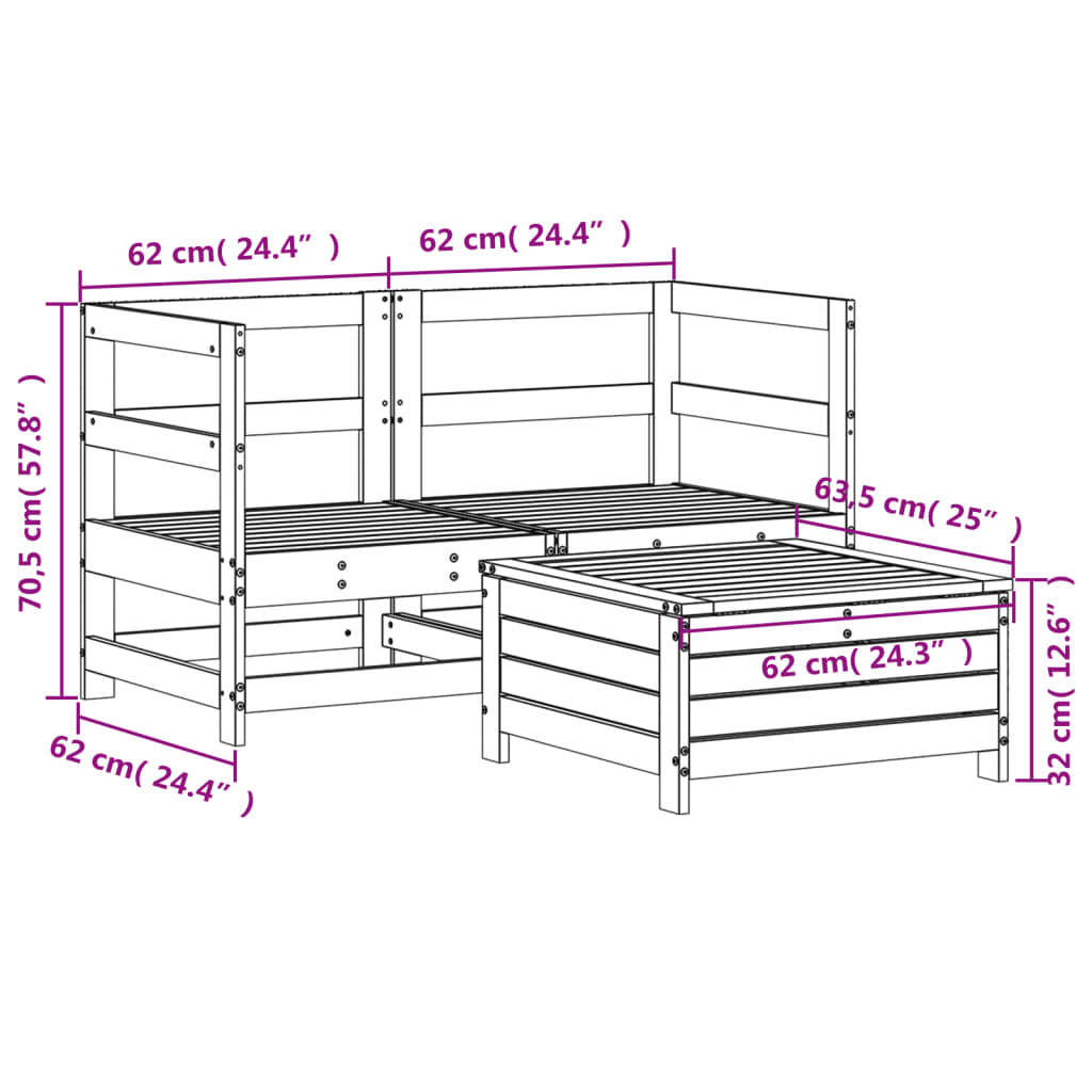 Soffgrupp för trädgården 3 delar massiv furu
