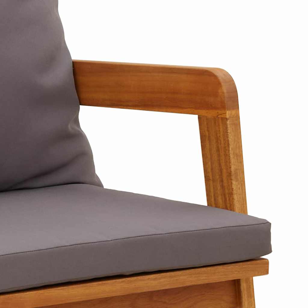 Massivt akaciaträ hantverk Hela setet är gjort av massivt akaciaträ, ett hållbart material som klarar av olika väderförhållanden. Det gör att möblerna både ser bra ut och håller sig fint över tid. Adernas mönster ger varje del sin egen karaktär, så inget set är helt likadant.