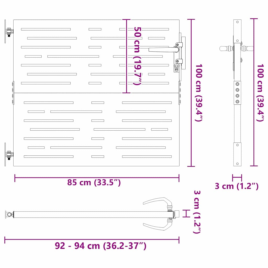 Den här rektangulära trädgårdsdörren fungerar som en snygg barriär för dina utomhusytor. Med sin moderna stil och stiliga laserutskärning passar den perfekt in i både trädgårdar och på terrasser och skapar en skyddad och inbjudande entré.